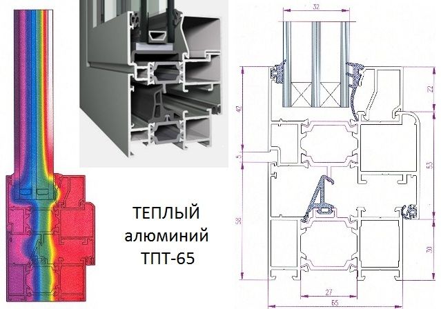 Алюминиевые оконные конструкции изготавливаются на основе двух типов профилей: теплого и холодного. Основным отличием теплого профиля от холодного является наличие специального терморазрыва. Благодаря полиамидно-стекловолоконной вставке, так называемому терморазрыву, алюминиевые окна на основе теплого профиля предохранены от замерзания в холодные времена года. Именно поэтому теплые профили применяют при изготовлении алюминиевых конструкций для отапливаемых помещений, которым необходимы оконные и дверные системы с высокой шумо- и теплоизоляцией